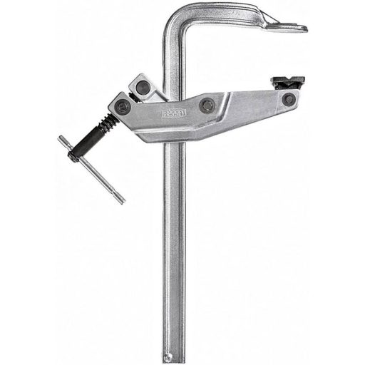 GRA fogókaros gyorsszorító, max. 7500 N szorítóerő, külső orsó, hegesztési szikrák ellen védett szabad hozzáférés a munkaterülethez előnyei összefoglalva: a legjobb stabilitás, egyetlen darabból készült rögzítő kar és nyomólap, nemesített, ezálal jól terhelhető és nem deformálódik. az optimált profil forma nagyobb kinyúlást enged meg úgy, hogy a stabilitás azonos marad. Külső fogantyú: a fogantyú a gyorsszorító sín mögött helyezkedik el. Speciálisan nehezen hozzáférhető munkadarabok szorításához és megtámasztásához. Speciális prizma nyomólemez: A stabil nyomólemez jó minőségű öntvényből készült és 30°-ig elforgatható. A prizma ideális kerek vagy négyszögletes munkadarabok szorításához és megtámasztásához.
