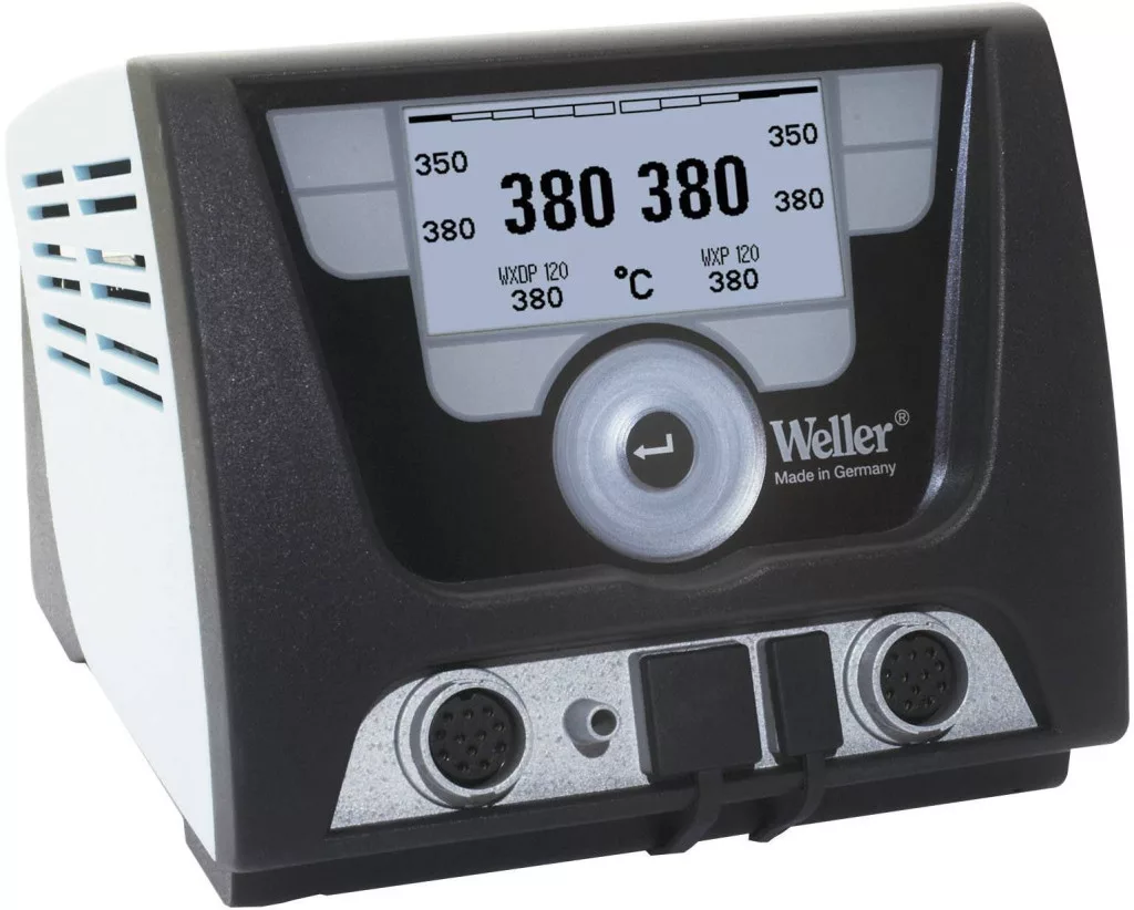 A WX család egy új WXD 2 forrasztó-és kiforrasztó állomással, 2 csatornával és az új kiforrasztó pákával, a WXDP 120-al bővül. Új, sokoldalúan használható forrasztó és kiforrasztó állomás profi javítási munkákhoz a legújabb technológiájú ipari gyártástechnikával készült elektronikus alkatrész csoportokon, valamint javításokhoz és laboratóriumokba. Mint minden WX szerszámnál a kiforrasztási paraméterek egyszerűen programozhatóak és a szerszámban tárolhatóak. A Power-Sharinggel egyedileg és rugalmasan választhatjuk meg minden felhasználási területhez a WX szerszámokat max. 255 W teljesítményig. A WXDP 120 a 35 mp-es felfűtési idejével új szintet jelöl ki a nagyteljesítményű forrasztás és kiforrasztás területén.
