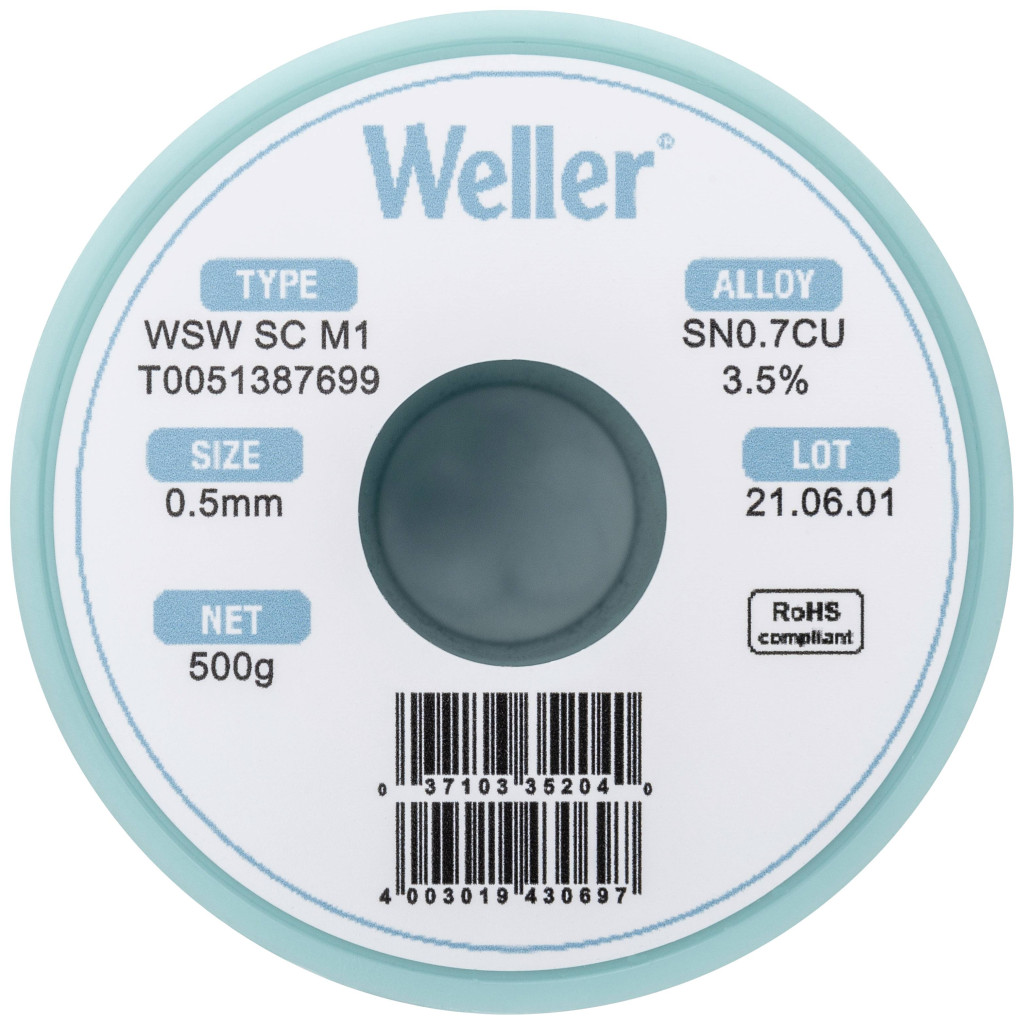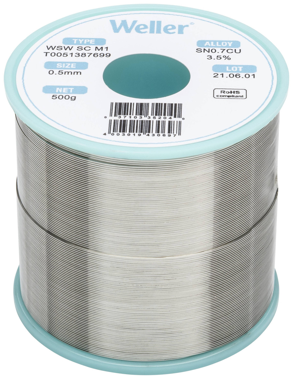 Forrasztóón, ólommentes, tekercs, Weller WSW SC M1 Sn0.7Cu 500 g 0.5 mm
