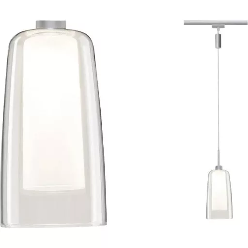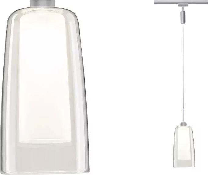 Műszaki adatok: Anyag: Üveg,Fém · Energiahatékonysági osztály (A++ - E): A+ · Foglalat: GU10 · Fényforrás típus: LED · Fényforrások száma: 1 · Fényszín: Melegfehér · Fényáram összesen: 490 lm · Fényáram/fényforrás (lumen): 490 lm · Lámpa jellemzők: Rövidíthető · Lámpa típus: Függőlámpa · Méret, magasság: 20 cm · Sorozat: URail · Szín: Króm (matt) · Súly: 1.02 kg · Teljesítmény: 5 W · Teljesítmény fényforrásonként: 5 W · Védelmi osztály: II · Védelmi típus: IP20 · Átmérő: 11 cm · Üzemi feszültség: 230 V