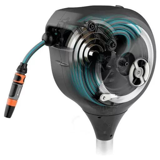 A GARDENA RollUp M kerti tömlődoboz megkönnyíti a fáradságos kerti öntözést és a hosszú öntözőtömlők kezelését. A fém talpnak köszönhetően a kompakt kerti locsolótömlő-doboz szinte bárhová felszerelhető a kertben. Egy rögzítőrúd segítségével a talajra erősített tüskét egyszerűen becsavarják a talajba, és rászerelik a tömlődobot. A kiváló minőségű kerti tömlő maximum 20 méterre meghosszabbítható öntözéshez. A beépített rövid reteszelőkarok könnyed kezelést biztosítanak: teljesen automatikusan rögzítik a tömlőt a kívánt hosszabbítási hosszban. Innovatív kialakításának köszönhetően a doboz 360°-ban elforgatható, és maximális mozgásszabadságot biztosít öntözés közben. Használat után a tömlőzár a tömlő végén található egyszerű meghúzással kioldható, és a kiváló minőségű acélrugó automatikusan és megbízhatóan visszatekeri a tömlőt. Az integrált tömlővezetőnek köszönhetően megakadályozható a tömlő megtörése vagy csomózódása. A RollControl technológia biztonságos és ellenőrzött visszahúzást biztosít. A kiváló minőségű anyag UV- és fagyvédelemmel van ellátva az időjárás viszontagságaitól. Kompakt és stílusos kialakításának köszönhetően a doboz könnyen integrálható bármilyen kertbe. Ezenkívül a GARDENA robotfűnyírók magasságához igazodik, így a tömlődoboz körüli gyep mindig karbantartott és lenyírt. A 20 méter hosszú öntözőtömlőt tartalmazó kerti tömlődoboz mellett a szállítási terjedelem tartalmazza az összes szükséges csatlakozó- és szerelési alkatrészt: egy flexibilis csatlakozótömlőt, az összes szükséges eredeti GARDENA rendszeralkatrészt, a szerelési tartozékokat és egy két különböző permetezési mintával rendelkező permetezőt. A GARDENA 5 év garanciát vállal erre a minőségi termékre.