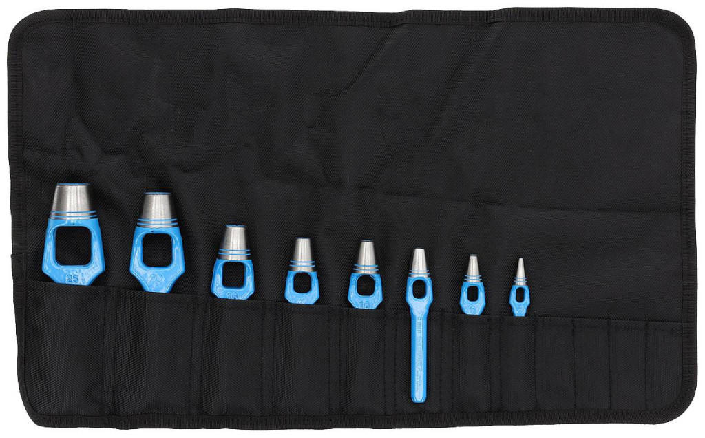 Szállítás tartalma: 3, 6, 8, 10, 12, 16, 20, 25 mm-es lyukasztók