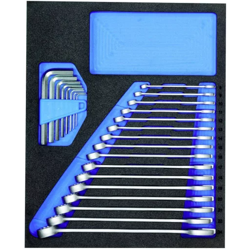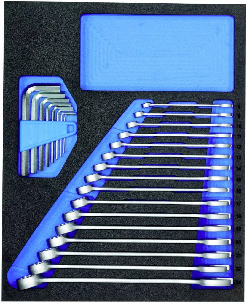 Műszaki adatok: Anyag: Habanyag · Kulcsszélesség: 8 mm, 10 mm, 15 mm, 07 mm, 19 mm · Méret, hossz: 390 mm · Méret, szélesség: 316.5 mm · További műszaki adatok: Tárolás: 2/4 ellenőrző szerszámmodul