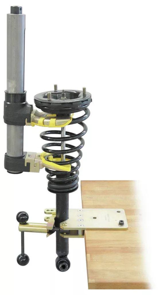 Univerzális rugóösszehúzó meghosszabbított munkalökettel. A KL-0015 SP rugóösszehúzó, beleértve a KL-1510 SP Gr. 1N és KL-1520 SP Gr. 2N rugórögzítő párokat, alkalmas személygépkocsik felfüggesztési rendszereinek jobbra emelkedő tekercsrugóinak és lengéscsillapítóinak cseréjére. A csúszásgátló védőbetétek megakadályozzák a rugó kicsavarodását és az érzékeny rugófelület bevonatának károsodását. Előnyök: A mobiltartó/emelőkocsi önzáró, Munkáltatói felelősségbiztosítási szövetség által jóváhagyva, Kúpos rugókhoz is alkalmas, Védő műanyag betétek