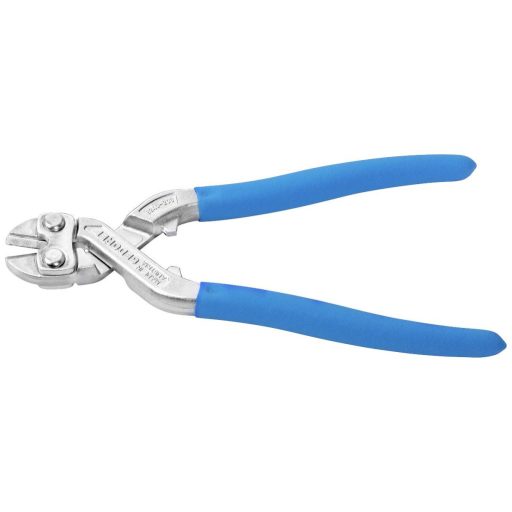 Kompakt teljesítményű csavarvágó különösen nagy vágási teljesítménnyel. Alacsony erőfeszítés szükséges az optimalizált tőkeáttételi aránynak köszönhetően. Kopásmentes forgó csapágycsap a csúszósúrlódás csökkentése érdekében a vágási folyamat során. A vágóélek indukciósan edzettek (63 - 65 HRC). A kétoldalas marás további vágóéllel a csatlakozás közelében biztosítja a legjobb áttételi arányt nagy huzalátmérők esetén. A kiegészítő vágóél durva vágóként szolgál vastag csavarokhoz, és nagyon mélyen bemetszi azokat. A második lépésben az elülső fő vágóél teljesen átvágja a csavart. Precíziós vágás puha huzalhoz Ø 6,0 mm-ig, kemény huzalhoz Ø 5,5 mm-ig és zongorahuzalhoz Ø 3,8 mm-ig. JL változat = acélszürke, 2 komponensű fogantyúburkolattal. TL változat = acélszürke, kékre mártott csúszásgátló fogantyúkkal. TC változat = krómozott, kékre mártott fogantyúburkolatokkal