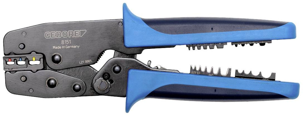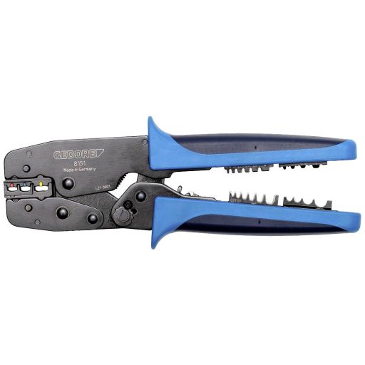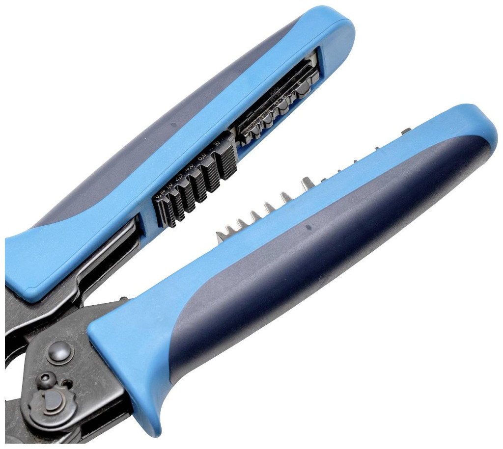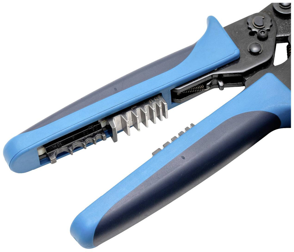 Integrált tárolórendszer a szerszám fogantyújában 2 további krimpelő szerszámkészlethez. Rugalmas szerszámrendszer, amely alapszerszámokból és krimpelő lapkakészletekből áll, amelyek gyorsan és szerszám nélkül cserélhetők. Akár 4 különböző krimpelési profil lehetséges egyetlen betétkészlettel. Legfeljebb 16 mm² vezeték-keresztmetszetű kábelek krimpeléséhez. A rugalmas változó rendszernek köszönhetően. Ergonomikus puha fogantyúk csúszásgátlóval. A nyitható kényszerzár biztosítja a teljes krimpelést. Nagy precizitással gyártott és gyárilag optimálisan beállított, ezért nincs szükség a krimpelőerő további beállítására. Nagy szilárdságú speciális acélból készült, a feszített részek speciálisan megedzettek