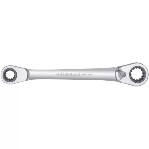 • 63 in 2 • Egyenes forma • Kapcsolókarral • Ratchet mechanizmus 72 fogakkal • 5 ° hátsó forgásszög • Matt szatén krómozott felület • Króm-vanádium acél