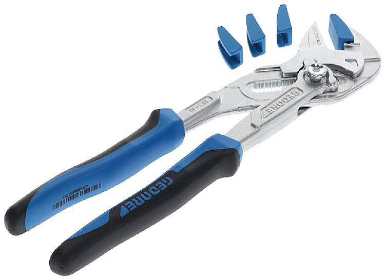 1:10) lehetővé teszi a nagy nyomó- és szorítóerőt a pofák számára. GEDORE speciálisan edzett acélból készül a legnagyobb terheléshez. Erőteljes helyettesítő eszközként használható mozgás közben. A kézpozíció optimális és ergonómikus beállítása a pofák nyitási szélességéhez vagy a csavarkulcs méretéhez