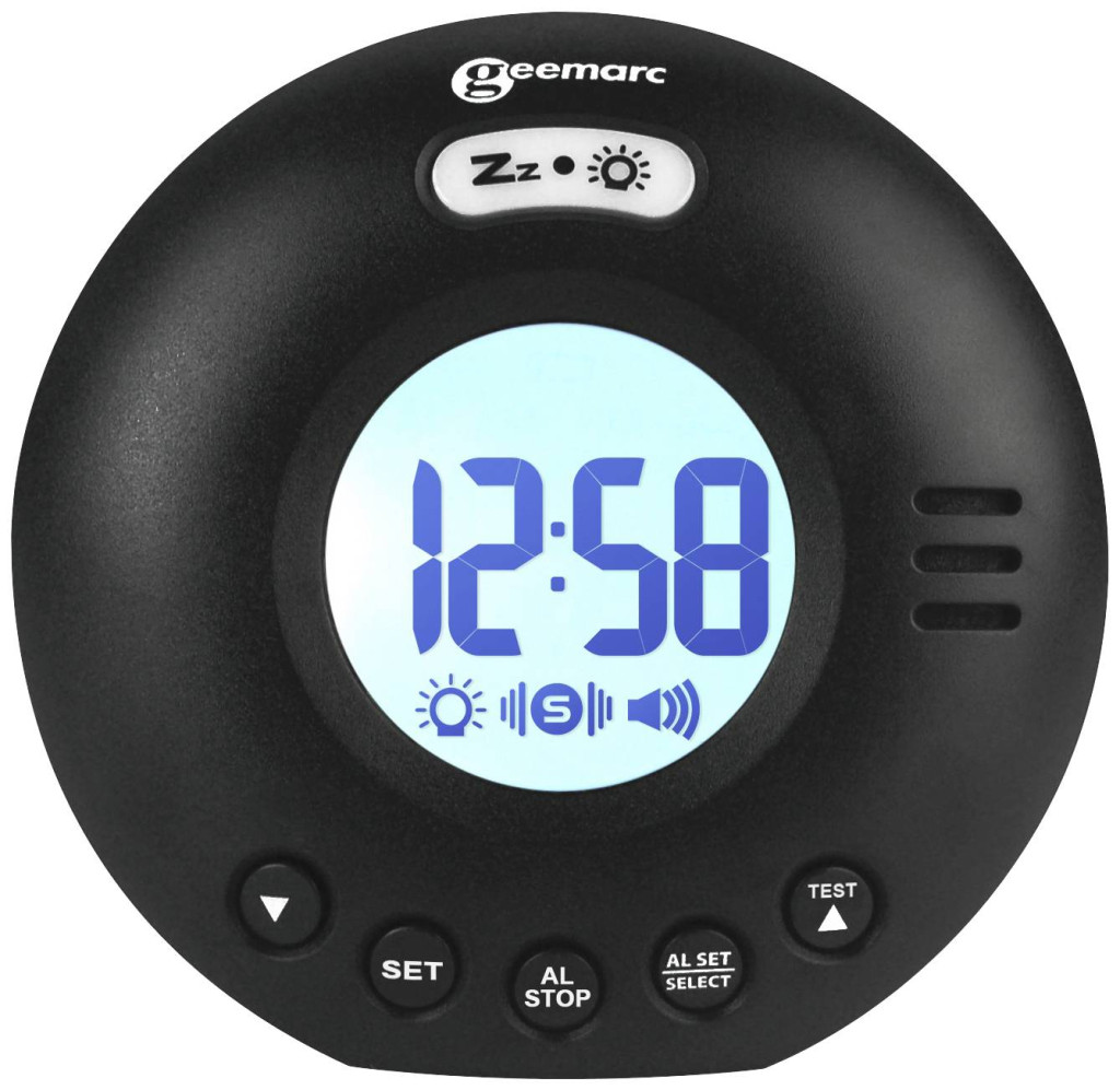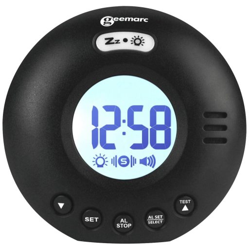 Geemarc Wake'n shake VOYAGER V2 hordozható utazási ébresztőóra extra hangos riasztással 75 dB + rezgés + utazási tok FEKETE