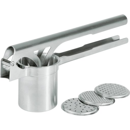 A trió a sokoldalú konyhához: három cserélhető korong burgonya, zöldség és gyümölcs pürésítéséhez, spagetti fagylalthoz és hosszú, „kézzel kapart” spaetzhez.