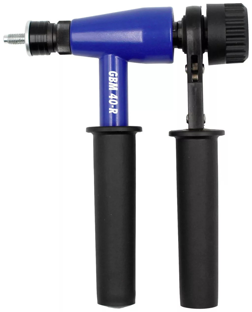 GBM 40-R Compact. Praktikus. Gyors! Beállítja a vakszegecsanyákat M12-ig Előnyök - Kompakt kialakítás, könnyű hozzáférés a munkadarabhoz, kis súly - nagyon jó erőátvitel a racsnis funkciónak köszönhetően - a tüskék és orrdarabok gyors és szerszámmentes cseréje - A GBM 50-el kompatibilis orr- és tüskék .