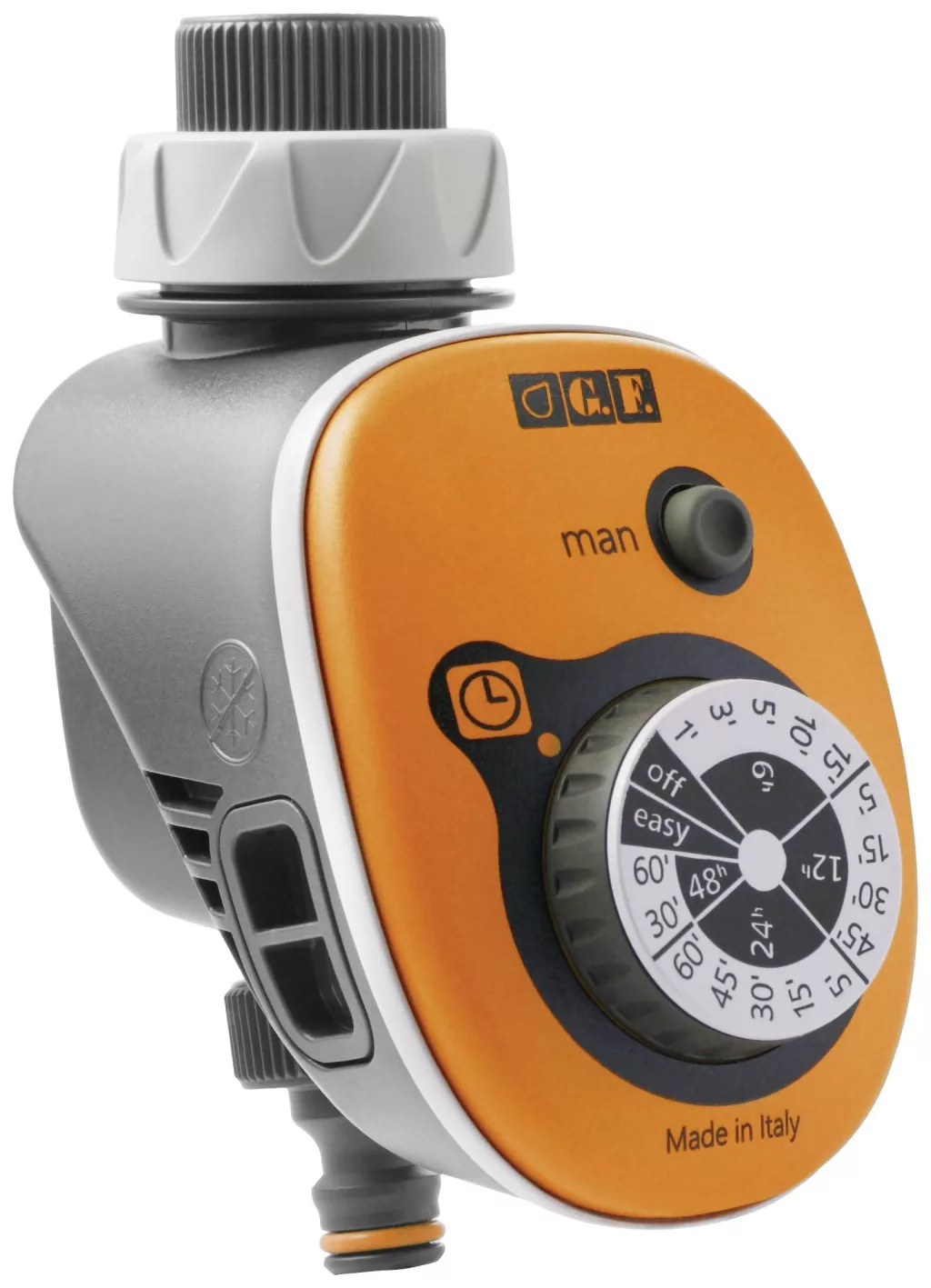 Egyszerű és megbízható, akár 16+1 lehetőséggel kombinálható programokkal rendelkezik, amelyek a kézi választóval kezelhetők. Indulás 6, 12, 24, 48 óránként előre rögzített öntözési időkkel. Egyszerű kertészeti program az öntözési ciklus optimalizálásához: napi két előre beállított öntözés, megfelelő öntözés reggel és este a talaj felszívódásának javítása és a növények károsodásának elkerülése érdekében.