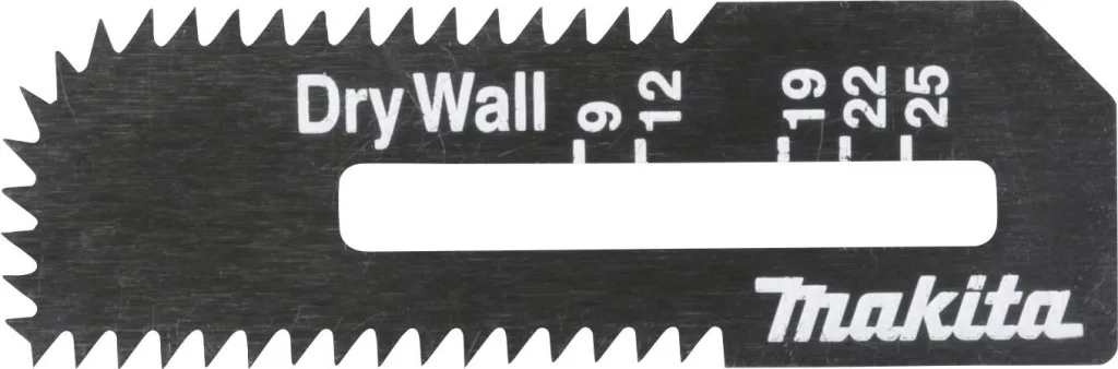 A gipszkarton fűrészlapok gipszkarton kivágásokhoz valók, és illeszkednek a Makita akkumulátoros gipszkarton fűrészekhez. A fűrészlapok skálával rendelkeznek, amellyel a bemerítési mélység milliméterre állítható.