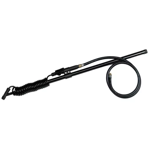 Műanyag teleszkópos szórócső csatlakozótömlővel és szeleppel, teleszkópos 0,9-3,0 m-től 3 fokozatban, minden nagy teljesítményű permetezőhöz alkalmas.