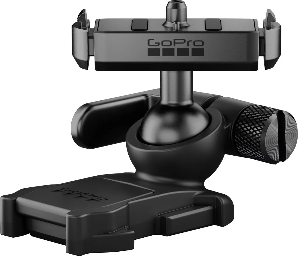 Könnyű tartócsere + perspektívákA mágneses zárral ellátott gömbcsuklós tartó segítségével könnyedén válthat a GoPro tartók (1) között a HERO13 Black készülékkel, így a kamera elforgatható és dönthető, hogy új perspektívákat rögzítsen. A mágnesek biztosítják, hogy a kamera pontosan az adapteren üljön, az automatikus reteszelő rendszer pedig biztonságosan a helyén tartja a kamerát hüvelykujj csavar nélkül. Az eltávolításhoz csak enyhén meg kell nyomni a reteszt. A fém ház különösen robusztussá teszi ezt a tartót – ideális társ minden kalandhoz.