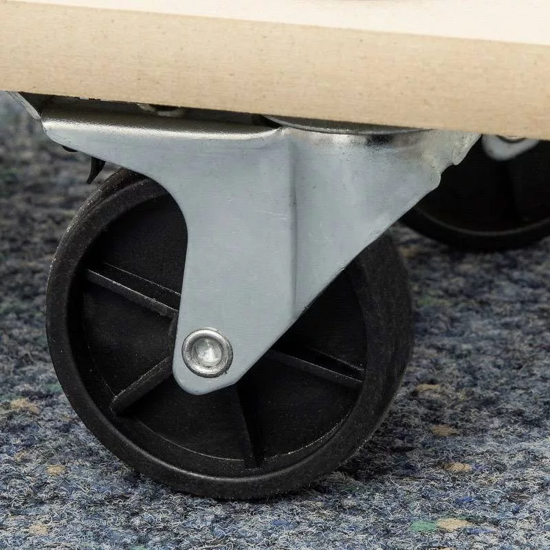 Műszaki adatok: Abroncs: Műanyag · Anyag: Fa · Görgők száma: 4 · Méret, magasság: 110 mm · Rakodófelület hossza: 590 mm · Rakodófelület szélessége: 290 mm · Szállítóeszköz típus: Roller · Szín: Barna,Fekete · Terhelés (max.): 200 kg