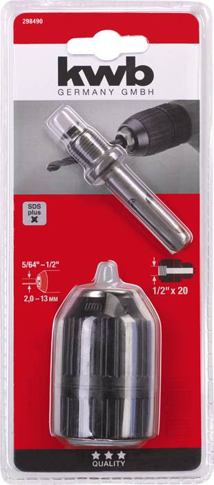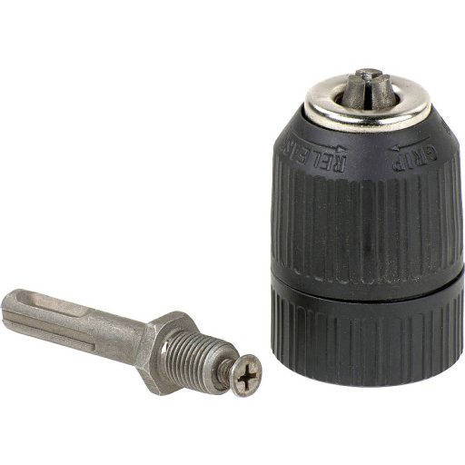 Könnyű kivitel, ütésálló, SDS-PLUS nyílással, átfúrva, akkumulátoros fúró-csavarozókhoz, akkus csavarhúzókhoz és az óramutató járásával megegyezően és ellentétes irányban forgó fúrógépekhez.