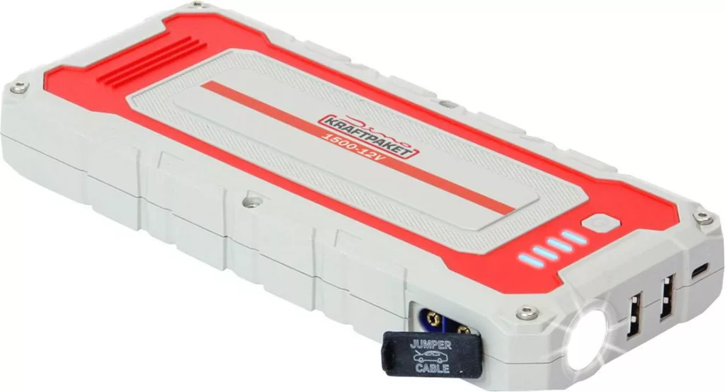 A négy sorba kapcsolt akkumulátorcella (4 x 4250 mAh) nagy teljesítményének köszönhetően ez az indítóberendezés 500 A indítóáramot és 1500 A csúcsáramot ér el. További előny az indítási kísérletek számának növekedése. A 20 indítási kísérlet helyett ezzel a technológiával maximum 40 indítási kísérlet lehetséges (a külső akkumulátor töltöttségi szintjétől és az indítandó autó akkumulátorától függően).