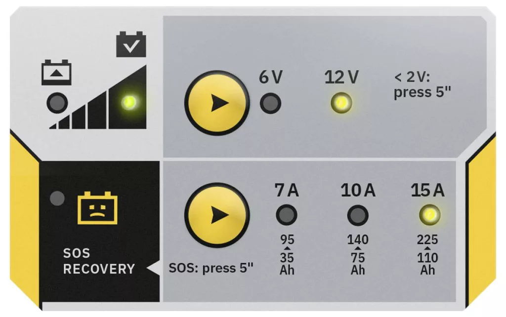 100%-os töltés: A Batium lehetővé teszi minden ólomakkumulátor-típus teljes töltését: zselés, AGM, VRLA, folyékony (IwUoU görbe)