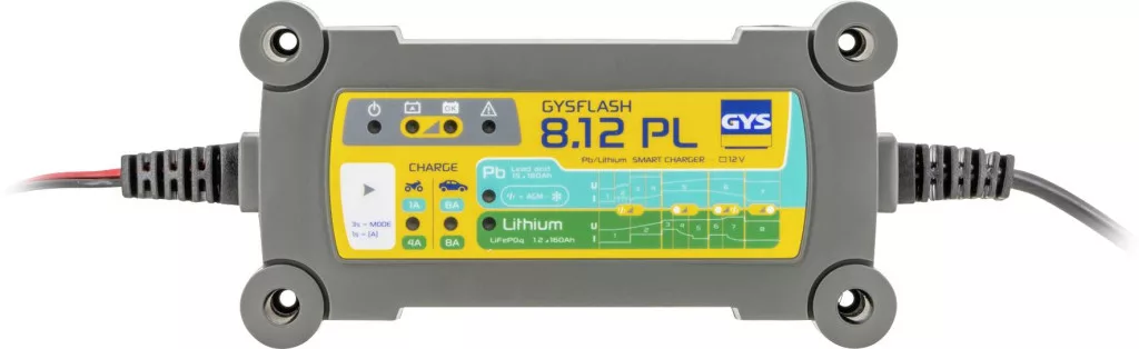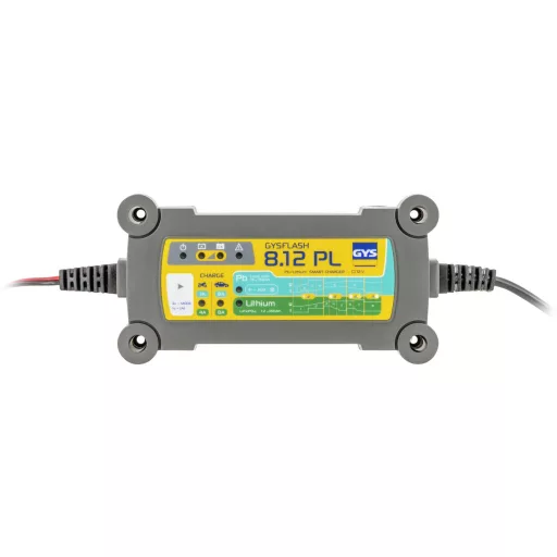 A GYSFLASH S 8.12 PL (8 A) egy modern töltő 12 V-os ólom-savas és lítium-vas-foszfát (LiFePO4) akkumulátorokhoz. Két független, intelligens töltési programmal rendelkezik, amelyek mindkét akkumulátor-technológia optimális teljesítményét biztosítják. 8 A töltőáramával optimálisan képes tölteni személygépkocsik, haszongépjárművek és lakóautók akkumulátorait.