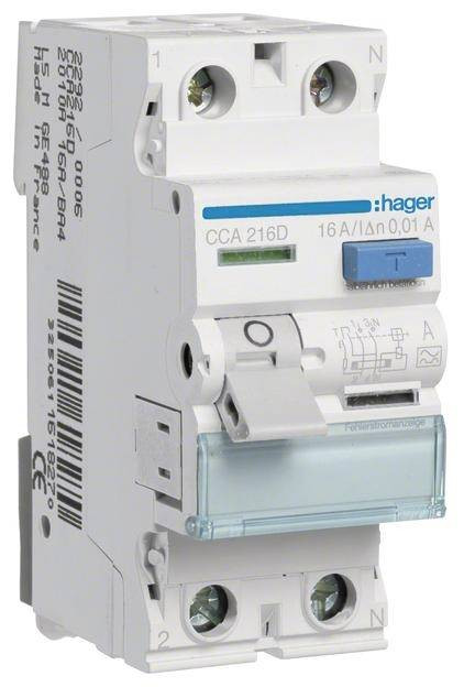 Hager CCA216D FI kapcsoló 2 pólusú 6kA 16A 10mA A típusú
