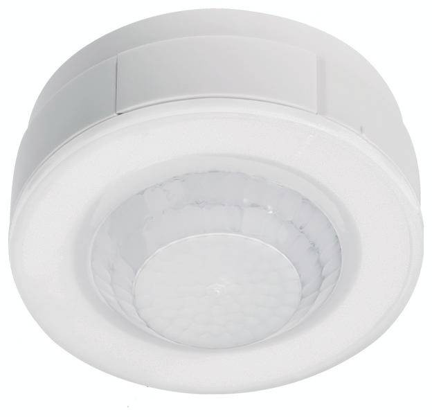 Mozgásérzékelő 360°-os felületre szerelhető, alaphelyzetben nyitott érintkező, nulla-keresztezésű kapcsolással. 360°-os mozgásérzékelő megnövelt érzékelési érzékenységgel a központi jelenlétérzékelési területen integrált alkonykapcsolóval a felületre szereléshez. Beltéri használatra, pl.: folyosókon, bejárati folyosókon, stb. Az érzékelő a mozgó testek infravörös sugárzására (testhőre) reagál, 6 m érzékelési átmérővel, 2,5 m ajánlott beépítési magasság mellett. Az üzenet elküldése beépített piroelektromos érzékelővel történik. A fényerő és a munkaciklus beállítása a házon lévő nyílás alatti potenciométerrel. A gyári alapbeállításnak köszönhetően azonnal használatra kész. Tesztelje a működést a funkció és az észlelési terület ellenőrzéséhez.