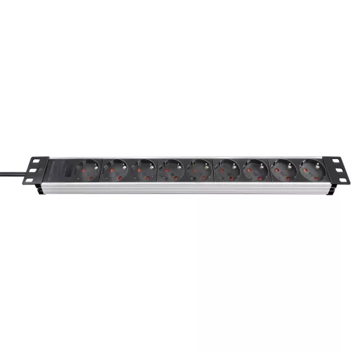 Műszaki adatok: Alkalmazási terület: Beltér · Anyag: Alumínium · Csatlakozási teljesítmény: 3600 W · Dugaljak száma: 9 · Gyermekvédelem: Igen · Hálózati elosztó jellemzők: Gyermekvédelem · Kivitel: Állványos · Kábel típus DIN/VDE szerint: H05VV-F 3G 1,5 mm² · Kábelhossz: 2 m · Méret, hossz: 520 mm · Méret, magasság: 50 mm · Méret, szélesség: 60 mm · Szín: Alumínium,Fekete · Típus: Elosztó, 19" · Üzemi feszültség: 230 V