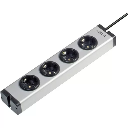 Műszaki adatok: Alkalmazási terület: Beltér · Anyag: Alumínium · Csatlakozási teljesítmény: 3680 W · Dugaljak száma: 4 · Gyermekvédelem: Igen · Hálózati elosztó jellemzők: Gyermekvédelem · Kivitel: kapcsoló nélkül · Kábelhossz: 1.50 m · Méret, hossz: 330 mm · Méret, magasság: 39 mm · Méret, szélesség: 65 mm · Szín: Alumínium · Típus: Elosztó kapcsoló nélkül