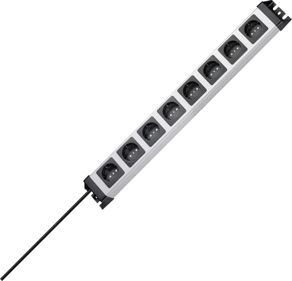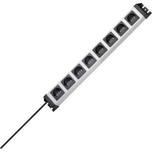 Műszaki adatok: Alkalmazási terület: Beltér · Anyag: Műanyag · Csatlakozási teljesítmény: 3600 W · Dugaljak száma: 8 · Gyermekvédelem: Igen · Hálózati elosztó jellemzők: Gyermekvédelem · Kivitel: Szerelési lyukak · Kábel típus DIN/VDE szerint: H05VV-F 3G 1,5 mm² · Kábelhossz: 1.40 m · Méret, hossz: 612.6 mm · Méret, magasság: 58 mm · Méret, szélesség: 71 mm · Szín: Szürke,Fekete · Típus: Elosztó kapcsoló nélkül · Védelmi típus: IP20 · Üzemi feszültség: 230 V