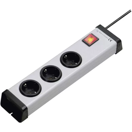 Műszaki adatok: Alkalmazási terület: Beltér · Anyag: Műanyag · Csatlakozási teljesítmény: 3600 W · Dugaljak száma: 3 · Gyermekvédelem: Igen · Hálózati elosztó jellemzők: Gyermekvédelem,Kapcsolóval · Kivitel: Szerelési lyukak · Kábel típus DIN/VDE szerint: H05VV-F 3G 1,5 mm² · Kábelhossz: 1.50 m · Méret, hossz: 334 mm · Méret, magasság: 47 mm · Méret, szélesség: 74 mm · Szín: Szürke · További műszaki adatok: VDE-vel · Típus: Elosztók kapcsolóval · Üzemi feszültség: 230 V