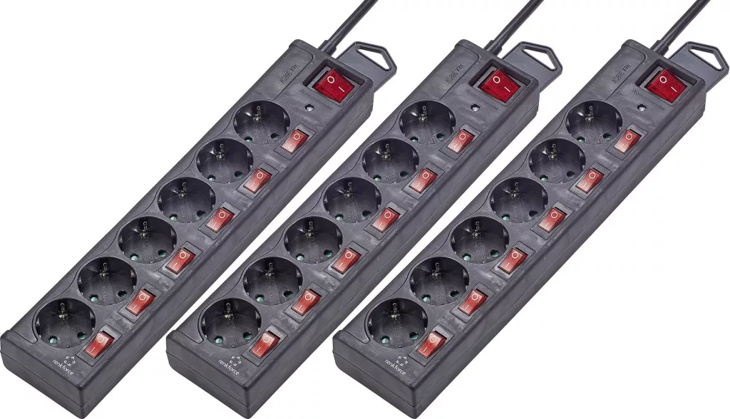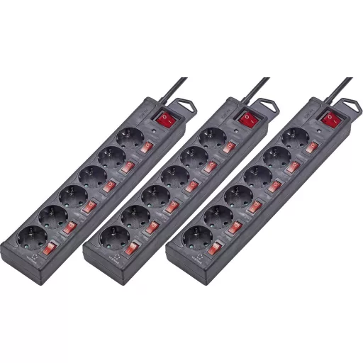 Hálózati elosztók túlfeszültség elleni védelemmel, 6 részes, külön kapcsolható, fekete, 3 részes készlet