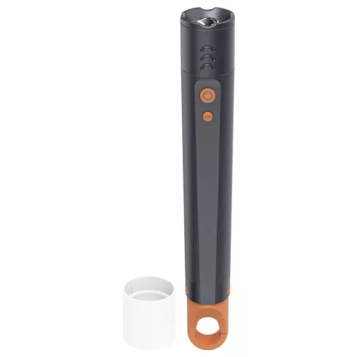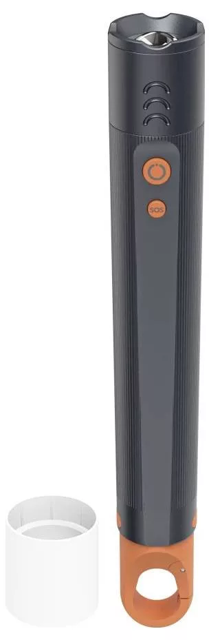 - A kültéri zseblámpa biztonságosan és csúszásmentesen hordozható a bordázott fogantyúnak köszönhetően, a zoom funkció pedig a bordázatnak köszönhetően könnyen állítható.