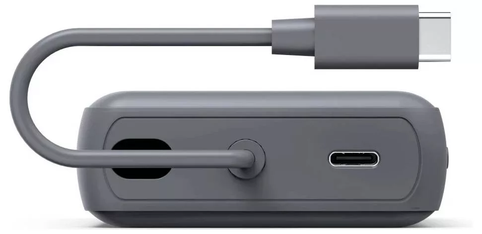- Bemenet / Kimenet: USB-C integrált kábellel, hossza 6,5 cm - használaton kívül a csatlakozó biztonságosan tárolható a mélyedésben