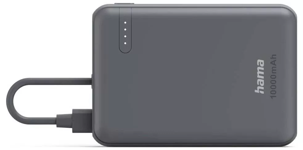 Hama Power Pack "Travel" mit Kabel, 10000mAh, 2 Ausgänge: 2x USB-C, Anthrazit Powerbank (kiegészítő akku) Antracit