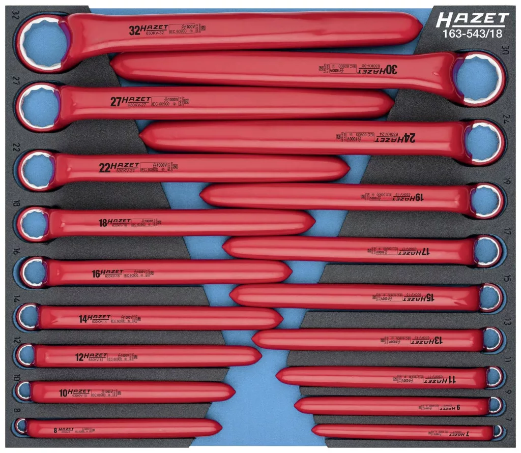 HAZET biztonsági betétrendszer (SIS) Alkalmas HAZET Assistanthez 398 mm fiókmélységgel: 173 ∙ 179 ∙ 179 É ∙ 179 W ∙ 179 NW ∙L 179 N BIG-1 ∙ 179 N XXL XXL 7979 ∙ 179 A XXL ∙ 179 T XXL ∙ 180 Felület: kettős szigetelésű IEC 60900:2018 Made In Germany Kimenet: Külső kettős hatszögletű profil Lapos szélesség: ∙ 7 – 32 Méretek / hossz: 34V-tól 4 mm-ig 1 x0 Védő szigetelés 392 mm-ig 1 x0 rendszerméret: 2/3+ (344 x 392 mm) HAZET biztonsági betétrendszer (SIS) Tökéletes szervezési rendszer – minden szerszám szilárdan beágyazva Gyors, integrált teljességellenőrzés – a hiányzó szerszámok azonnal észrevehetők Végtelen kombinációs lehetőségek Minden HAZET műhelykocsihoz Fiókos asszisztens Az Assistent 173, 179 (XL-XXL) és 180-as műhelykocsikhoz a 163-522x40 vagy 163-522x50 méretű puha habszivacs betéteket is ajánljuk Szerszámok száma: 18