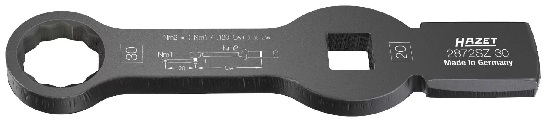 HAZET ütközőgyűrűs csavarkulcs ∙ dupla hatlapú ∙ 2 ütőfelülettel 2872SZ-30 ∙ négyzet 20 mm (3/4 hüvelyk) ∙ külső kettős hatlap profil ∙ 30 mm