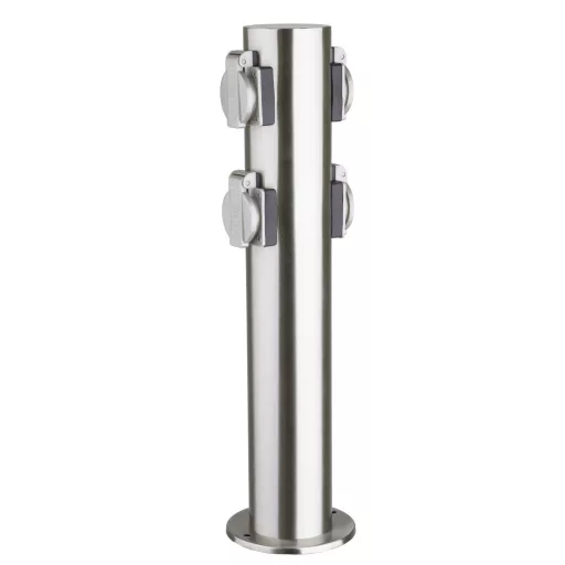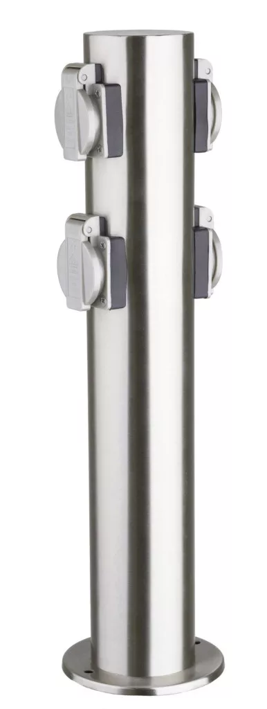 Műszaki adatok: 2021-es energiahatékonysági osztályok: n.rel. · Alkalmazás helye: Kültér, Beltér · Anyag: Nemesacél · Csatlakozási teljesítmény (max.): 3680 W · Dugaljak száma: 4 · Gyártói szín: Nemesacél · Hálózati csatlakozó típus: Dugó nélkül · Hálózati elosztó jellemzők: Gyermekvédelem · Mennyiség megadása: 4 részes · Méret (kiegészítő szöveg): Kültéri · Méret, hossz: 118 mm · Méret, magasság: 450 mm · Méret, szélesség: 118 mm · Szerelési mód: Szabadon álló · További műszaki adatok: IP 44 · Üzemi feszültség: 230 V