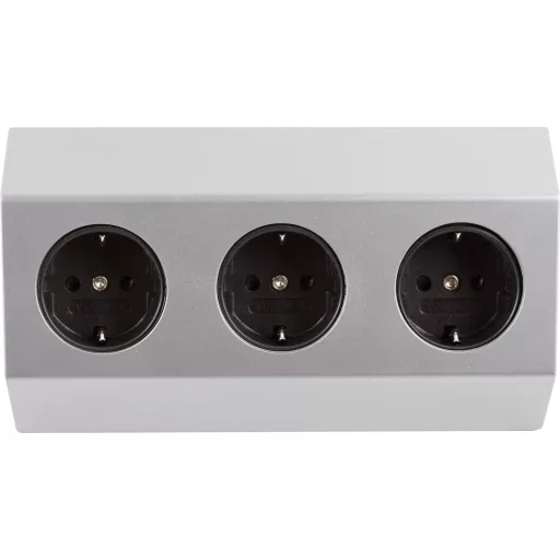 Műszaki adatok: Alkalmazás helye: Beltér · Anyag: Műanyag · Csatlakozási teljesítmény: 3680 W · Dugaljak száma: 3 · Gyártói szín: Fehér, Ezüst · Hálózati elosztó jellemzők: Gyermekvédelem · Kivitel (általános): 3-szoros · Kábelhossz: 1.00 m · Méret, hossz: 76 mm · Méret, magasság: 76 mm · Méret, szélesség: 187 mm · Szerelési mód: Felszerelhető, Alá szerelhető · Védelmi típus: IP20 · Üzemi feszültség: 230 V