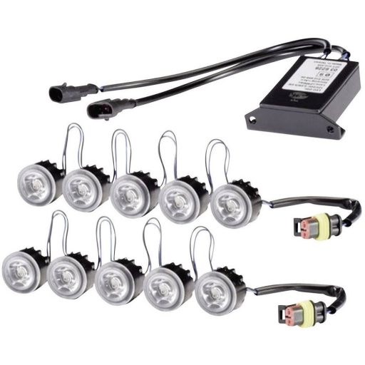 kerek fénymodulokból álló modulláncból, valamint a nappali fényszórók vezérlésére szolgáló két elektronika dobozból áll. A rendszer