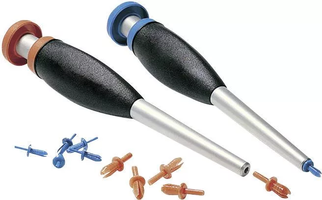 Optimális eszköz a HTWD-R4 vagy HTWD-R6 bővülő szegecsek gyors és biztonságos beállításához. Stabil és robusztus eszköz a fáradtságmentes munkavégzéshez. Kiválóan alkalmas magas csatornákhoz és megközelíthetetlen helyekhez is. Színkódolás a megfelelő táguló szegecsek könnyű hozzárendeléséhez. Ezek az eszközök nagyon hasznosak a vezetékcsatornák rögzítéséhez a táguló szegecsekkel HTWD-R4 és HTWD-R6. A rögzítés sokkal bonyolultabb a hagyományos csavarokkal