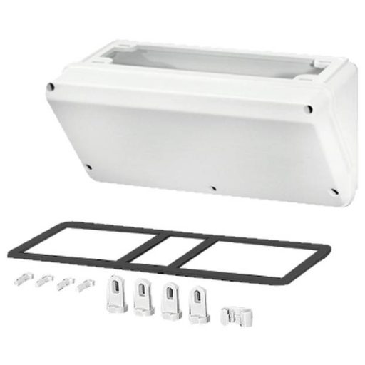 Csatlakozó doboz kívülről működtethető eszközök, például dugaszolható készülékek, gombok és kapcsolók telepítéséhez. 300 mm-es házfalakra történő felszereléshez.