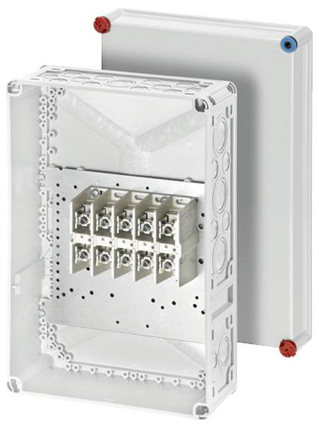 Jellemzők: 5 pólusú 2 x 16-150 mm², 4 x 16-70 mm² pólusonként, a vezetékeket elölről be lehet helyezni a terminálba, a kapocstechnológiát lásd a DK kábelcsatlakozó dobozok műszaki függelékében, a szerelőkábel tömszelencéjét, a szerelési karimákat és az egyéb kiegészítőket külön kell megrendelni Csatlakozás előtt készüljön el a vonatkozó műszaki ajánlásoknak megfelelően, olvassa el az alumíniumvezetőkre vonatkozó műszaki információkat.