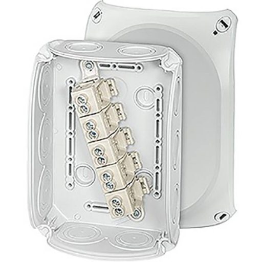 Műszaki adatok: Anyag: Műanyag · Gyártói szín: Szürke · Kivitel (általános): Négyszögletes · Méret, hossz: 180 mm · Méret, magasság: 77 mm · Méret, szélesség: 130 mm · Nedves helyiségbe való elágazódoboz jellemzők: Halogénmentes, Plombálható · További műszaki adatok: Felszereltség: terminál