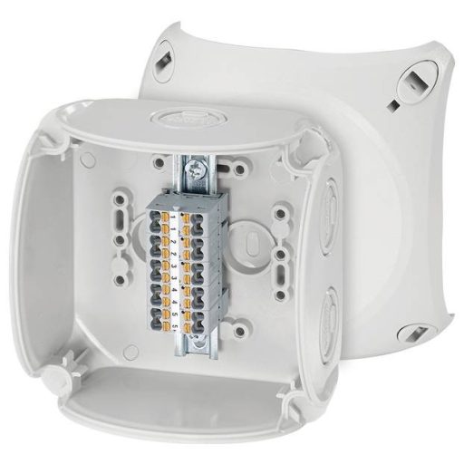 Műszaki adatok: Gyártói szín: Szürke · Kapcsolódoboz jellemzők: halogénmentes, Plombálható, Időjárásálló · Méret, hossz: 104 mm · Méret, mélység: 70 mm · Méret, szélesség: 104 mm · Szerelési mód (kapcsolódobozok): Falra szerelhető · További műszaki adatok: Halmozott: nem