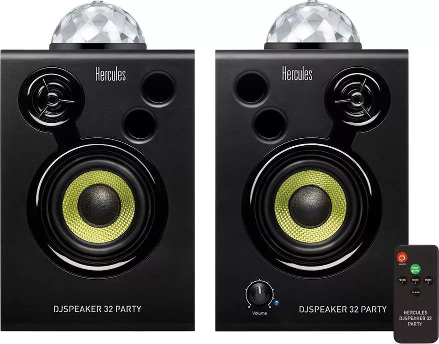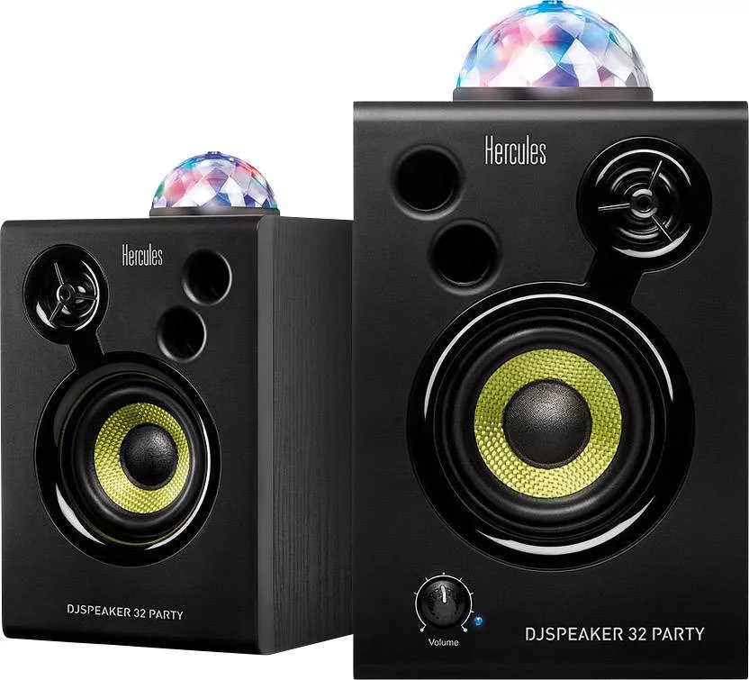 A Hercules DJSpeaker 32 parti hangszórók kiváló minőségű hanggal és LED-es világítási rendszerrel világítják meg partiát színes légkör érdekében. Mindegyik hangszóró láng- és reflektorfényhatásokkal felszerelt kupolavilágítással van felszerelve, hogy az esemény egyedi legyen.