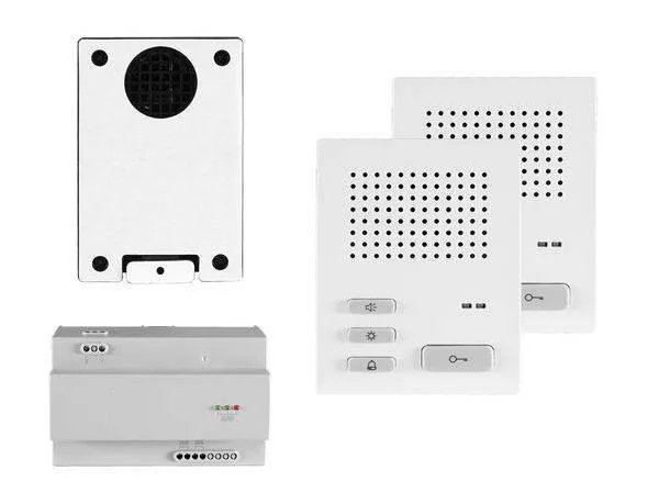 2 családos szett VILLA AUDIO TELEPÍTÉS a 2 vezetékes BUS rendszerhez, csengetési panelekbe vagy postafiók-rendszerekbe való beépítéshez ragasztópárnával vagy egy meglévő eszközzel.