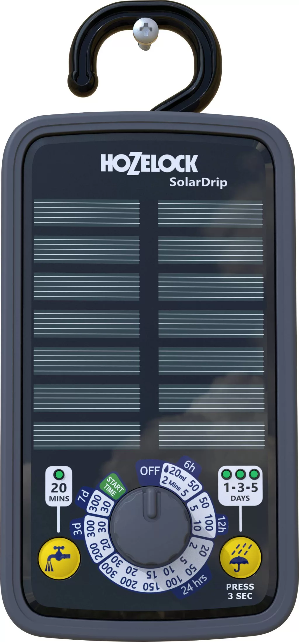 Öntözés időzítő mechanikus szabályozóval. Csatlakozik a csaphoz és elindítja a kertje öntözését, pl. esőztető vagy mikroöntözőrendszer működése. A tárcsa segítségével napi egyszeri öntözési időt állíthat be 5 és 120 perc között. Az öntözés azonnal megkezdődik, és a beállított idő letelte után automatikusan leállítja a vízáramlást.