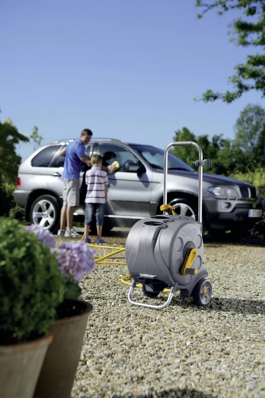 Stabil és könnyen manőverezhető tömlőkocsi zárt tömlőtartóval. Ebben a víztömlő optimálisan védett, és mindig rendben van és helytakarékos. A tömlő egyszerű fel- és feltekercselése megkönnyíti a kert, az ágyások és a növények öntözését. Ez a kompakt tömlőkocsi teljesen össze van szerelve és fel van szerelve egy 30 méteres (Ø 12,5 mm) tömlővel, fokozatmentesen állítható tömlőfúvókával és minden szükséges tartozékkal (3/4 és 1/2 csapcsatlakozó, tömlődarabok és tömlődarabok vízleállítóval) és ezért használatra kész.