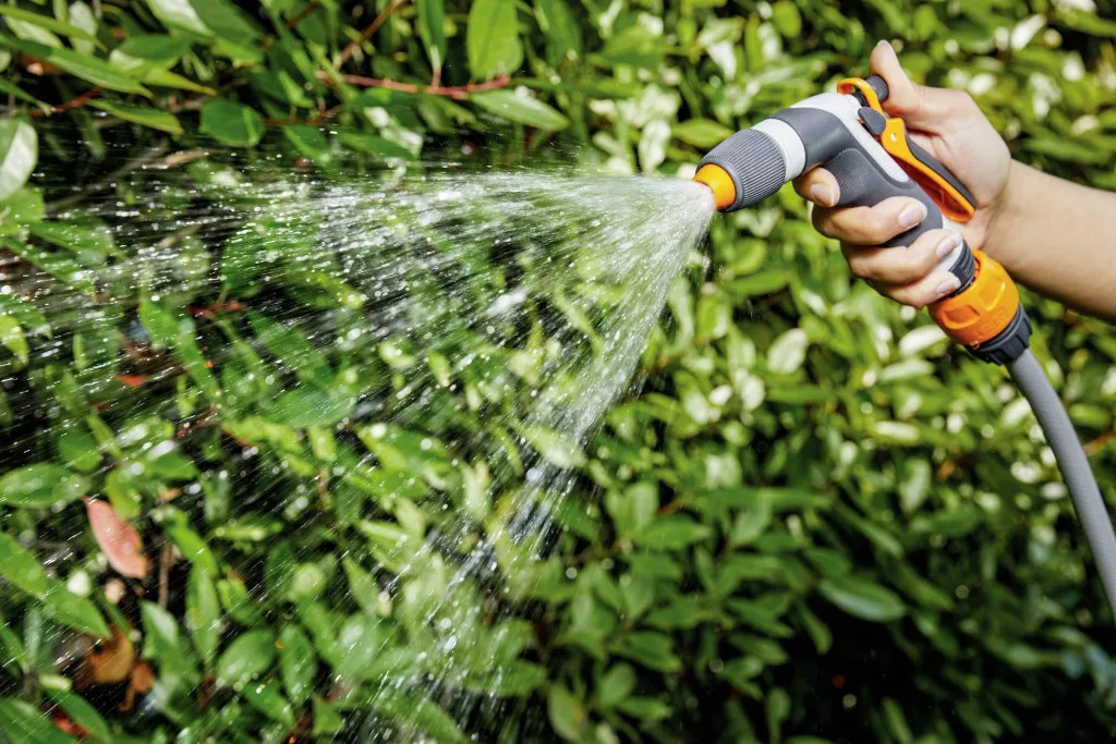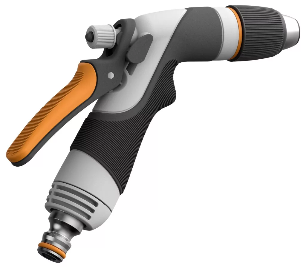Fémházas szórópisztoly puha gumi fogantyúval, sugártól ködig állítható. Maximális áramlási sebesség 12 l/perc 4 bar nyomáson