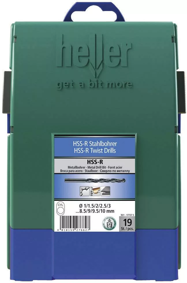 Műszaki adatok: Anyag: HSS · Anyag alkalmasság: Fém,Színesfém,Műanyag · Anyagjellemző: Hengertekercselt · DIN szabvány: DIN 338 · Fúró típus: Fém spirálfúró készlet · Kivitel: 19 részes Ø 1 - 10 mm · Szerszám tartó: Henger szár · Tartalom: 1 készlet